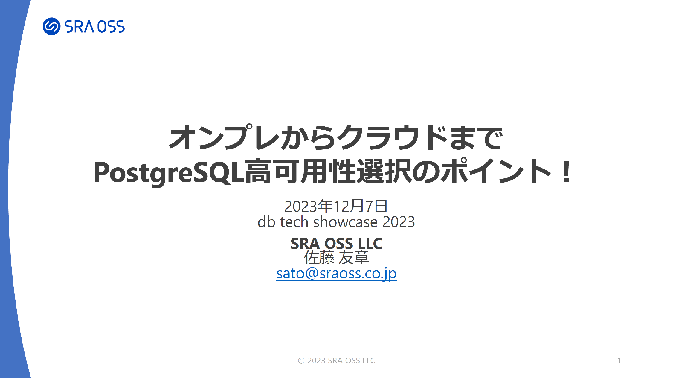 【SRA OSS×SIOS 共催】マネージドサービス か HAクラスタソフト か クラウドで実現するPostgreSQLの高可用性セミナー(Webinar)