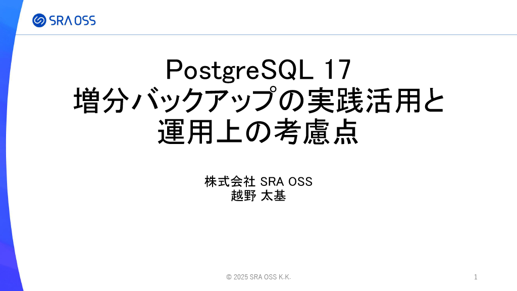 【SRA OSS主催】 PostgreSQL の高可用性と性能向上を実現!