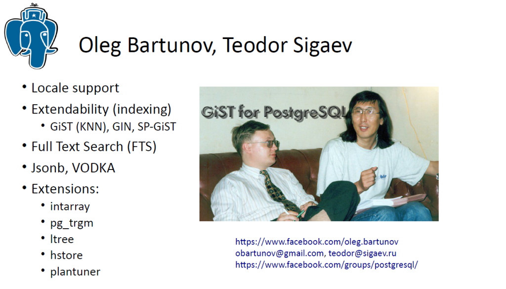 皆さま、こんにちは。オレグ・バルトノフと申します。現在私は、モスクワ国立大学のシュテルンベルク天文研究所に勤めており、PostgreSQL の開発を行っています。日本に来たのは初めてで、こうして呼んで頂いたことをとても嬉しく思っております。