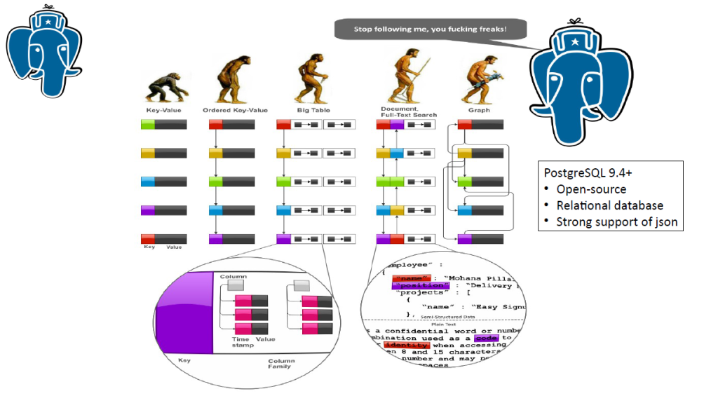私たちは PostgreSQL 9.2 で、JSON(JavaScript Object Notation)を導入しました。今回私たちは、JSON のフォーマットをより進化させ、PostgreSQL 9.4 に JSONB を導入したわけですが、ここにいたるまでは長い道のりであり、大きな挑戦でもありました。