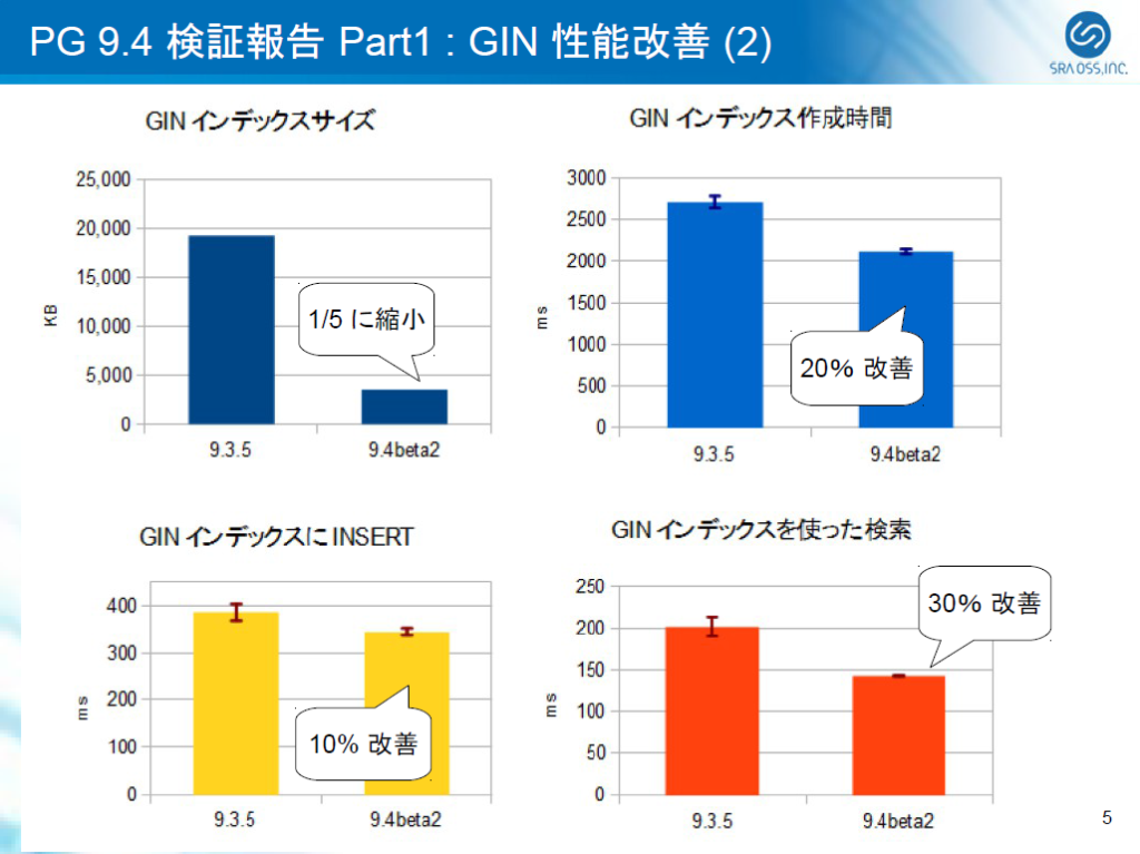 別ページ (PostgreSQL 9.4 に関する検証報告) にも資料をアップしておりますので、興味をお持ちいただいたところは、ぜひご参照いただければと思います。