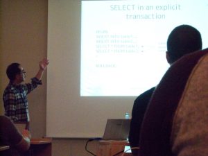 Bruce Momjian 氏からは、SQL の標準表形式(WITH 句)の使い方に関する発表がありました。