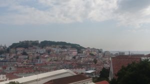 「7つの丘の街」と呼ばれるほどに坂が多い街で歩き回るのは少し疲れますが、ケーブルカーで坂を登った先にある展望台からは赤レンガの屋根の街並みとその向こうを流れるテージョ川が一望できます。