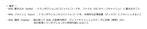 | 通知タイミング | synchronous_commit で指定された段階まで、スタンバイ側で WAL 処理が完了したことを待ってから通知する |